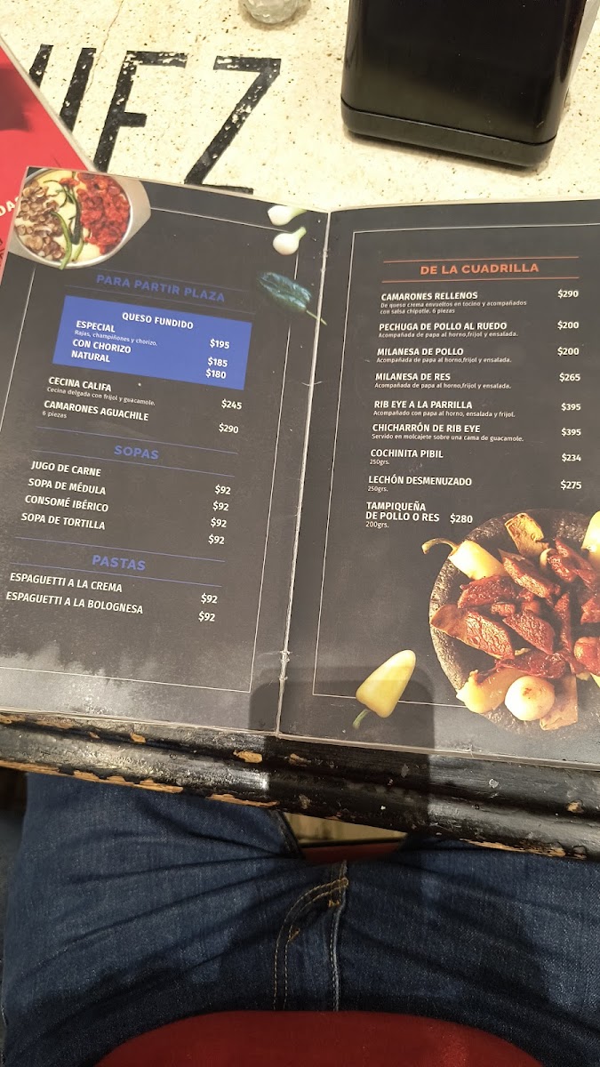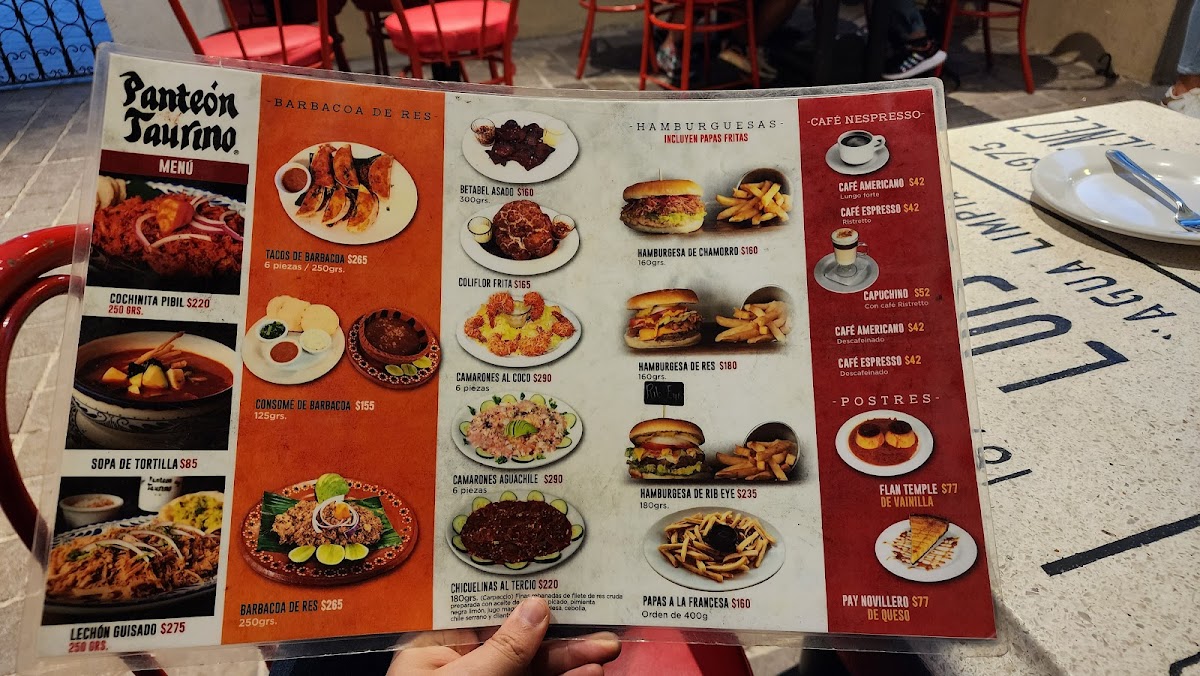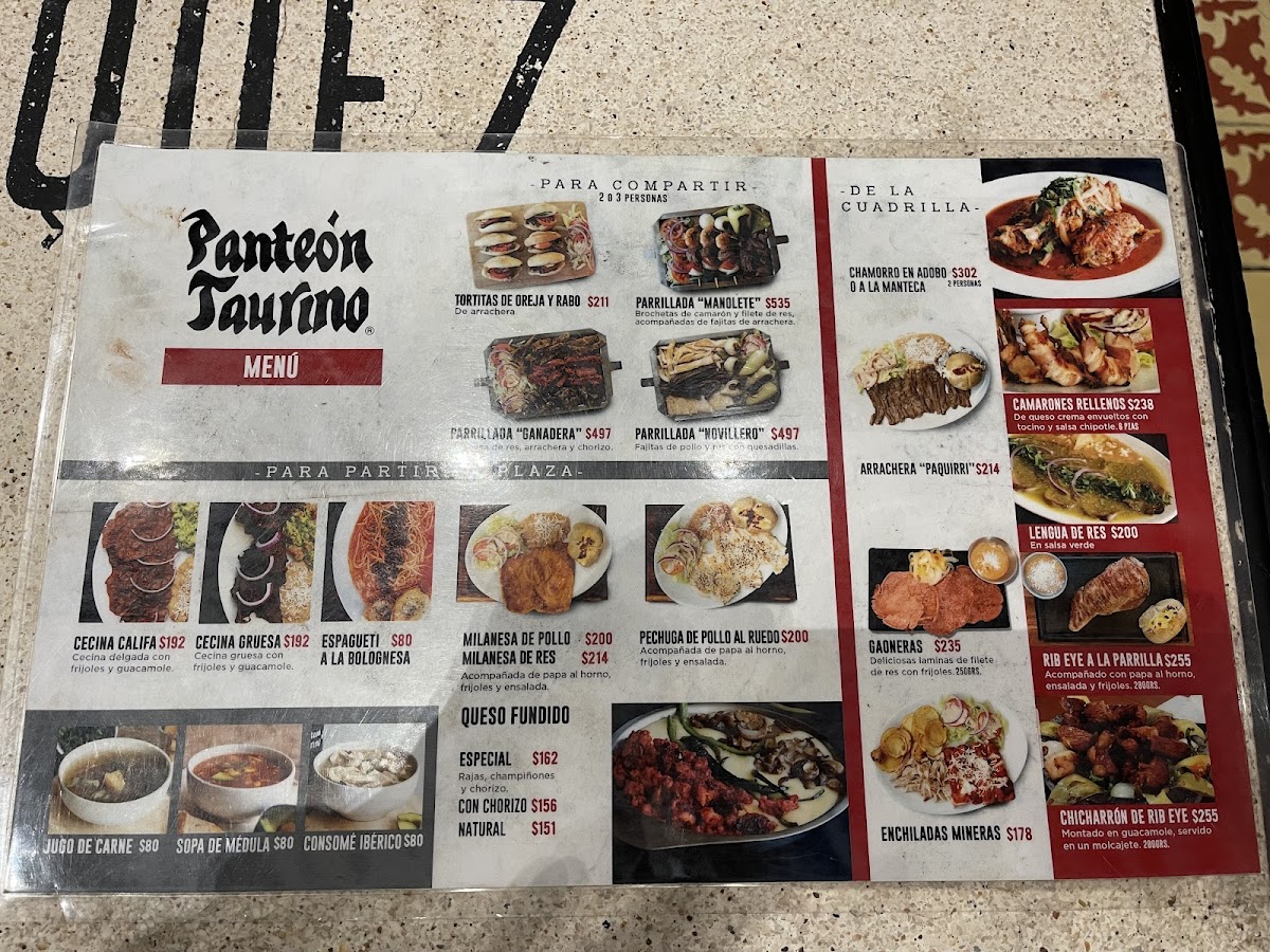 Panteón Taurino Menu
